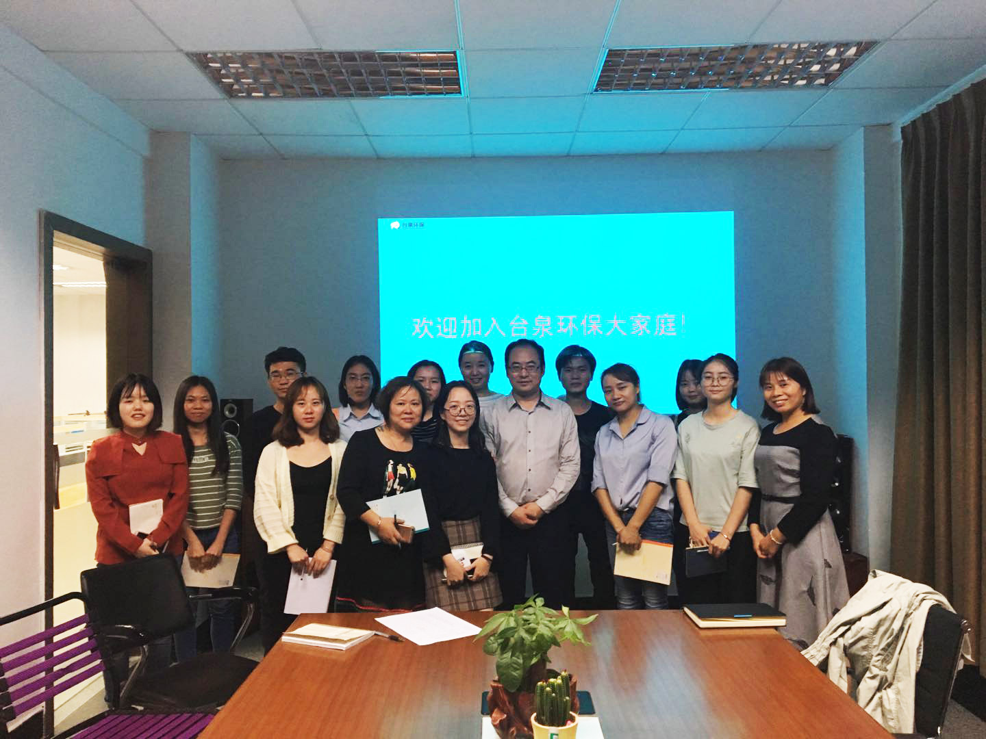 在2019年3月21日春分的這一天,我們公司在晚上的六點半開始組織了一次新員工的入職培訓,由臺泉環(huán)保的董事長謝總主講了臺泉的愿景和2019年的發(fā)展規(guī)劃。培訓會上,謝總著重講述了臺泉人倡導的和反對的,并讓我們時刻牢記安全生產(chǎn)的要求、時刻保持警惕,另外,還要時刻謹記保密的原則,樹立保密意識。對于未來,我們充滿憧憬!